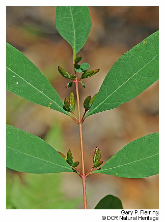 Tidal hardwood swamps occur along all of the major eastern Virginia rivers from the James River northward, but are most extensively developed along the Pamunkey and Mattaponi Rivers, where regular tidal inundation is unimpeded by levees or channel alteration. Its habitats are influenced by lunar tides up to 1 m (3 ft), but diluting freshwater flows from upstream keep salinity levels below 0.5 ppt. Communities in this group are structurally complex, with semi-open overstories and diverse multiple lower strata. Pumpkin ash (Fraxinus profunda) and swamp tupelo (Nyssa biflora) are the most abundant overstory species, with occasional associates of red maple (Acer rubrum), green ash (Fraxinus pennsylvanica), sweetgum (Liquidambar styraciflua), swamp chestnut oak (Quercus michauxii), common persimmon (Diospyros virginiana), and black gum (Nyssa sylvatica). From the Potomac River north, green ash becomes increasingly important and largely replaces pumpkin ash as an overstory dominant in northern Virginia. Shrub layers are mixed and extraordinarily diverse. Common species include winterberry (Ilex verticillata), smooth alder (Alnus serrulata), southern wild raisin (Viburnum nudum), arrow-wood (Viburnum dentatum), wax myrtle (Morella cerifera), American holly (Ilex opaca var. opaca), fetterbush (Eubotrys racemosus), spicebush (Lindera benzoin var. benzoin and var. pubescens), sweetbay magnolia (Magnolia virginiana var. virginiana), swamp rose (Rosa palustris), silky dogwood (Cornus amomum) stiff dogwood (Cornus foemina) , and Virginia-willow (Itea virginica). Climbing vines such as poison ivy (Toxicodendron radicans var. radicans), Virginia-creeper (Parthenocissus quinquefolia), and greenbriers (Smilax spp.) are also common. Herb layers are rich with a wide variety of wetland ferns, graminoids, and forbs. Characteristic herbs are halberd-leaf tearthumb (Persicaria arifolia), groundnut (Apios americana), rice cutgrass (Leersia oryzoides), arrow-arum (Peltandra virginica), false nettle (Boehmeria cylindrica), water-hemlock (Cicuta maculata var. maculata), Virginia dayflower (Commelina virginica), lizard's-tail (Saururus cernuus), fringed sedge (Carex crinita), orange jewelweed (Impatiens capensis), Canada mint (Mentha canadensis ), royal fern (Osmunda spectabilis), cowbane (Oxypolis rigidior), and greater marsh St. John's-wort (Triadenum walteri). Stands transitional between more closed forest and open marsh may contain abundant wild rice (Zizania aquatica var. aquatica).