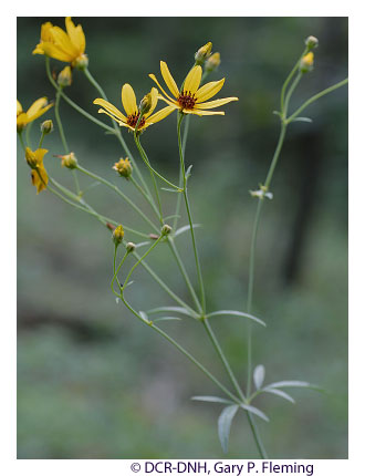 这里的植被由暖季型牧草和草本植物组成,几乎总是有零星的小树。在环境和植物变化最大的波托马克河峡谷,河道陆架上的草原通常生长着发育不良的青灰(Fraxinus pennsylvanica)、沼泽白栎(Quercus bicolor)、丝质山茱萸(Cornus amomum 和Cornus obliqua)以及其他洪泛平原树木,呈现出热带稀树草原的特征。草原位于地势较高、洪水较少的基岩台地上,含有发育不良的高地树木,如白蜡(Fraxinus americana)、后栎(Quercus stellata)和木质山核桃(Carya glabra)。这两种变体中的主要草类通常是大蓝花楹(Andropogon gerardii)、印度草(Sorghastrumnutans)和开关草(Panicum virgatumvar.virgatum),在较高、较干燥的台地露头上也盛产小蓝花楹(Schizachyrium scopariumvar. 其他具有普遍特征的植物包括蓝色野靛蓝(Baptisia australis )、紫罗兰三叶草(Lespedeza frutescens)、轮叶松香草(Silphium asteriscus var.trifoliatum )、Culver's-root(Veronicastrum virginicum)、淡水帘草(Spartina pectinata)、狭叶山薄荷(Pycnanthemum tenuifolium)、扁平刺丛(Eleocharis compressavar.compressa)、脉豌豆(Lathyrus venosus)和普通金黄芒(Zizia aurea)。波托马克河大草原特有的物种包括西部向日葵(Helianthus occidentalisssp.occidentalis)、密烈星(Liatris spicatavar. 詹姆斯河大草原特有的物种包括桑普森蛇床子(Orbexilum psoralioides)、北服从植物(Physostegia virginianassp.virginiana)和美国薇菜(Vicia americana var.)