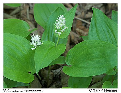 Red spruce (Picea rubens) forests similar in composition to those of the North Carolina and Tennessee high mountains are restricted to high-elevation slopes and summits of the Southern Blue Ridge (> 1,300 m [4,300 ft]) in Grayson, Smyth, and Washington Counties and Clinch Mountain (> 1,400 m [4,600 ft]) in Russell and Tazewell Counties. Environmental conditions are similar to those of the Fraser fir forests. Southern mountain-cranberry (Vaccinium erythrocarpum) and hobblebush (Viburnum lantanoides) are prevalent shrubs in the typical stands of these communities. A rarer community type features overwhelming shrub dominance by evergreen rhododendrons (Rhododendron maximum and Rhododendron catawbiense). Yellow blue-bead lily (Clintonia borealis), mountain wood fern (Dryopteris campyloptera), mountain wood-sorrel (Oxalis montana), shining clubmoss (Huperzia lucidula), and Canada mayflower (Maianthemum canadense) are abundant herbs rooting in the thick moss cover. As lower elevation limits are approached, co-dominance by hardwoods, particularly yellow birch (Betula alleghaniensis), increases.