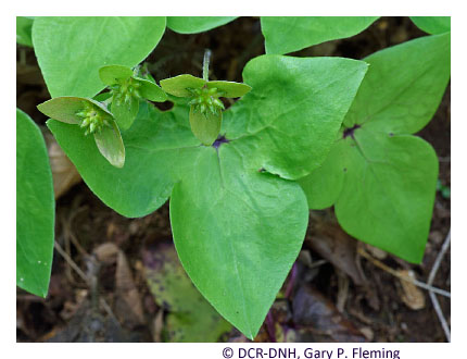 Dry-mesic calcareous forests occur in deeper soils of valley sideslopes, lower mountain slopes, gentle crests, and ravines up to about 1,150 m (3,800 ft) elevation. Forests of this group are widely distributed in the Ridge and Valley province, more local in the Cumberland Mountains, and rare in the northern Piedmont Triassic Basin. Mixtures of sugar maple (Acer saccharum), black maple (Acer nigrum) , chinquapin oak (Quercus muehlenbergii), white oak (Quercus alba), northern red oak (Quercus rubra), black oak (Quercus velutina), white ash (Fraxinus americana), and hickories (Carya spp.) are typical. A distinctive variant is co-dominated by eastern white-cedar (Thuja occidentalis), usually in association with eastern white pine (Pinus strobus), eastern hemlock (Tsuga canadensis), and hardwoods. Tulip-tree (Liriodendron tulipifera) is most abundant as an invader of logged stands. Understory and herbaceous vegetation varies from sparse to lush (especially on limestone sites), but is generally dominated by species characteristic of submesic soil moisture conditions, such as white snakeroot (Ageratina altissima var. altissima), hog-peanut (Amphicarpaea bracteata), common eastern bromegrass (Bromus pubescens), sharp-lobed hepatica (Hepatica acutiloba), and common black cohosh (Actaea racemosa).