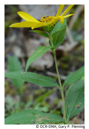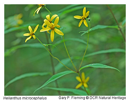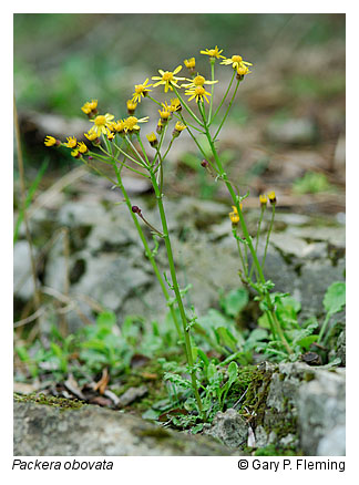 Dry calcareous forests occur on subxeric to xeric, fertile habitats over carbonate formations of limestone and dolostone, or very rarely highly calcareous siltstone or shale. Habitats are steep, usually rocky, south- to west-facing slopes at elevations from < 300 to 900 m (< 1,000 to 2,900 ft). Soils vary from circumneutral to moderately alkaline and have high calcium levels. Confined in Virginia to the mountains, these communities are most frequent and extensive in the Ridge and Valley, but occur locally in both the Blue Ridge and Cumberland Mountains. Tree canopies vary from nearly closed to quite open and woodland-like. Overstory mixtures of chinquapin oak (Quercus muehlenbergii), sugar maple (Acer saccharum), black maple (Acer nigrum), northern red oak (Quercus rubra), white oak (Quercus alba), Shumard oak (Quercus shumardii), white ash (Fraxinus americana) and blue ash (Fraxinus quadrangulata, extreme southwest Virginia only) are typical. These forests and woodlands share many understory and herbaceous plants with the Piedmont / Mountain Basic Woodlands group and are similarly species-rich. A few of the taxa that are confined to or most important in the limestone and dolostone communities include Carolina buckthorn (Frangula caroliniana), round-leaved ragwort (Packera obovata), robin's-plantain (Erigeron pulchellus var. pulchellus), American beakgrain (Diarrhena americana), slender muhly (Muhlenbergia tenuiflora), black-seed ricegrass (Patis racemosa), limestone purple sedge (Carex purpurifera, in extreme southwestern Virginia only), hairy sunflower (Helianthus hirsutus), small-headed sunflower (Helianthus microcephalus), northern leatherflower (Clematis viorna), and white death-camas (Anticlea glauca). Logging and fire exclusion are probably the biggest threats to dry calcareous forests.