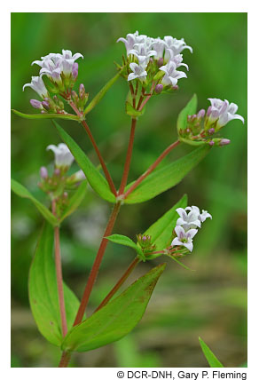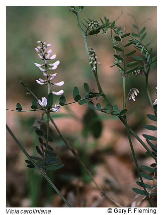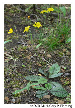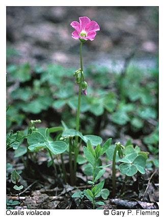 Forests in this group are similar to those of the Basic Oak-Hickory Forests, but occupy submesic to subxeric upland sites with soils weathered from subacidic parent material such as siltstone, metasiltstone, shale, certain granites, and various metamorphic rocks. These forests are widely distributed throughout the Piedmont, mountain valleys, and lower mountain slopes of both the Blue Ridge and Ridge and Valley, up to about 600 m (2,000 ft) elevation. They were probably once also frequent in better soils of the Coastal Plain, but now only widely scattered remnants remain there. Hickories (Carya spp.) are less abundant than in the Basic Oak-Hickory Forests group but are nevertheless common, often primarily as understory trees. Dominant oaks include white oak (Quercus alba), black oak (Quercus velutina), scarlet oak (Quercus coccinea), northern red oak (Quercus rubra), southern red oak (Quercus falcata), and chestnut oak (Quercus montana). Flowering dogwood (Cornus florida) is a characteristic, often abundant understory tree, although its numbers have been greatly reduced in recent decades by the fungal pathogen dogwood anthracnose (Discula destructiva). Deciduous ericads, especially lowbush blueberry (Vaccinium pallidum) and deerberry (Vaccinium stamineum), are usually present but patchy in the shrub layer, along with maple-leaved viburnum (Viburnum acerifolium). Herbaceous diversity is somewhat less than in Basic Oak-Hickory Forests but considerably greater than in Oak/Heath Forests. Typical herbs of these communities include plaintain-leaved pussytoes (Antennaria plantaginifolia), Pennsylvania sedge (Carex pensylvanica), whorled coreopsis (Coreopsis verticillata), poverty oatgrass (Danthonia spicata), common dittany (Cunila origanoides), rattlesnake weed (Hieracium venosum), large summer bluets (Houstonia purpurea), low St. Andrew's cross (Hypericum stragulum), whorled loosestrife (Lysimachia quadrifolia), violet woodsorrel (Oxalis violacea), gray beard-tongue (Penstemon canescens), solomon's-seal (Polygonatum biflorum var. biflorum), lion's foot (Nabalus serpentarius), wild pink (Silene caroliniana var. pensylvanica), silverrod (Solidago bicolor), wavy-leaved aster (Symphyotrichum undulatum), and wood vetch (Vicia caroliniana).