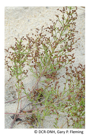 在一些高大的残余沙丘和沙丘喷发区域,矮灌木沙石楠 ( Hudsonia tomentosa ) 与海滨一枝黄花 ( Solidago sempervirens ) 形成群落。 )、苦海草( Panicum amarum var. amarum )、格雷扁草( Cyperus Grayi )和海滩针草( Lechea maritima var. virginica )。这种群落类型存在于阿萨蒂格岛、帕拉莫尔岛和弗吉尼亚东南海岸,通常与海上沙丘林形成马赛克状。沿海灌木丛受到沿海开发以及自然和人为干扰的威胁,这些干扰破坏了保护性的原始沙丘系统。