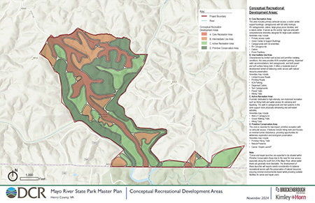 根据《弗吉尼亚州法典》,弗吉尼亚州自然保护和娱乐部正在指导制定这个新州立公园的总体规划。该总体规划的目的是通过识别自然、文化和物质资源来指导公园的管理和发展,以及确定公园的需求并与公众互动。