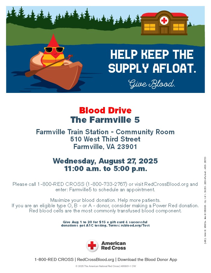 800-733-2767%29.%3C%2Fp%3E%0D%0A%0D%0A%3Cp%3EEligible+type+O%2C+A-%2C+and+B-+donors+are+especially+encouraged+to+consider+a+Power+Red+donation+to+help+more+patients+in+need.+Successful+donors+between+August+1%26ndash%3B28+receive+a+%2415+e-gift+card+and+A1C+testing+%28terms+at%3A+rcblood.org%2FTest%29.%3C%2Fp%3E%0D%0A%0D%0A%3Cp%3ELet%26rsquo%3Bs+come+together+as+a+community+to+support+this+vital+cause.+Every+drop+counts%26mdash%3Bevery+donor+helps+save+lives.+%23FarmvilleStrong+%23GiveBlood+%23AmericanRedCross+%23HighBridgeTrailSupportsLife%3C%2Fp%3E%0D%0A&st=20250827T110000-04%3A00&et=20250827T170000-04%3A00&v=60" target="_blank">